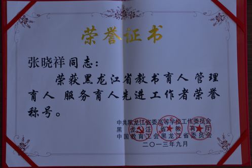 近日,从校工会获悉,在今年9月举办的省高校工委省教育厅省教育工会2011—2013两个学年度教书育人管理育人服务育人先进集体和先进个人评选中,我校获省教书育人管理育人服务育人先进集体;张晓祥被评为省教书育人管理育人服务育人先进工作者。