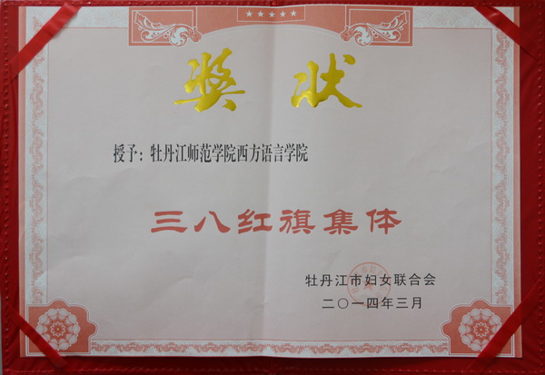 2014 年3月20日 ,我校西方语言学院荣获2013年度牡丹江市“三八红旗集体”荣誉称号;体育科学学院教师张高华博士被授予牡丹江市2013年度“先进女职工”荣誉称号。在过去的一年里,我校女职工为地方经济和文化建设做出了突出的贡献。她们是学校发展建设中一支不可或缺的骨干力量,为推动学校升级发展,实现两大目标建设正发挥着积极的作用。