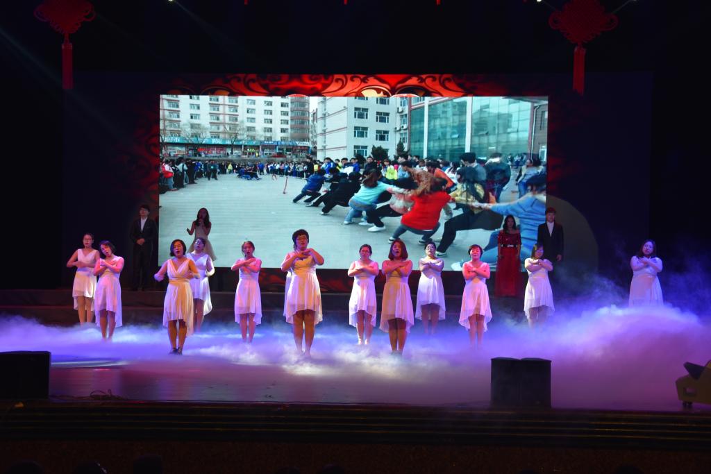 伴着温馨喜庆的氛围,由教务处、历史与文化学院、音乐与舞蹈学院、应用英语学院、机关、武装保卫处表演的歌曲联唱《恭喜发财》《中国味道》《美丽中国走起来》和《欢乐中国年》以喜庆热闹的宏大场面拉开晚会帷幕;后勤管理与服务处表演医护人员的炫美的手灯舞《爱无赦》使人眼前一亮;生命科学与技术学院和音乐与舞蹈学院教工将民族唱法与现代流行唱法融合共同演绎了一曲新《九九艳阳天》,带领观众回忆过去的同时感慨生活在新时代的美好;教师教育学院和音乐与舞蹈学院表演的《相亲相爱一家人》唱出了学院大家庭的温暖,其中的手语表演让我们感受到师生之间的真挚情感。