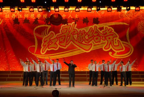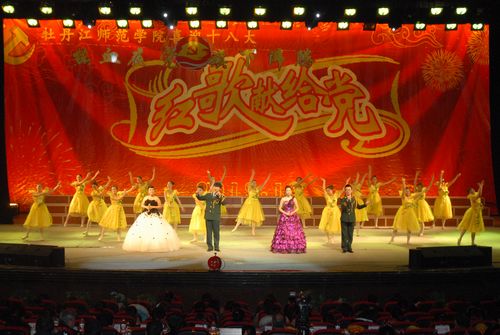 演出在音乐与舞蹈学院表演的歌伴舞《欢天喜地》的欢歌笑语中热烈开场。第一个接受评委和观众检阅的节目是由我校离退休老同志自编自演的音话歌舞《西山脚下一抹夕阳红》,表演者个个精神抖擞、全情投入,充分展现了我校离退休老同志老有所养、老有所乐的良好风貌;接下来的配乐诗朗诵《我的南方和北方》,带领观众们一同纵览祖国的大好河山,诵出了中华儿女对伟大祖国的无限热爱;小合唱《打靶归来》、《祖国不会忘记》、《一千零一个愿望》等,唱出了师院员工的铿锵士气和美好祝愿;演出中,还演唱了由我校职工自创的《问问举过的手》、《军红旗》、《妈妈的大草原》、《我是花儿悄悄开》等歌曲,表现出了师院人对美好生活的歌颂,对中国共产党的忠诚;此外,独舞《惊鸿舞》柔美惊艳、咏唱《沁园春·雪》激情满怀、健美操《快乐恰恰》动感欢畅、独唱《十送红军》深情款款、《军中姐妹》飒爽英姿,都展现出了教职员工出色的才华。演出中,由参加井冈山党性教育培训班的各基层党委(党总支)书记、副书记们表演的大合唱《团结就是力量》、《我们走在大路上》唱出了党务工作者们对伟大的党的无限热爱、对美好未来的无限憧憬。最后,音乐与舞蹈学院师生共同为观众们演绎歌曲《阳光路上》,为本次文艺演出画上了完美的句号。整场演出,气氛隆重热烈,掌声此起彼伏。将牡丹江师范学院师生员工对党的十八大胜利召开的喜悦心情表达得淋漓尽致。
